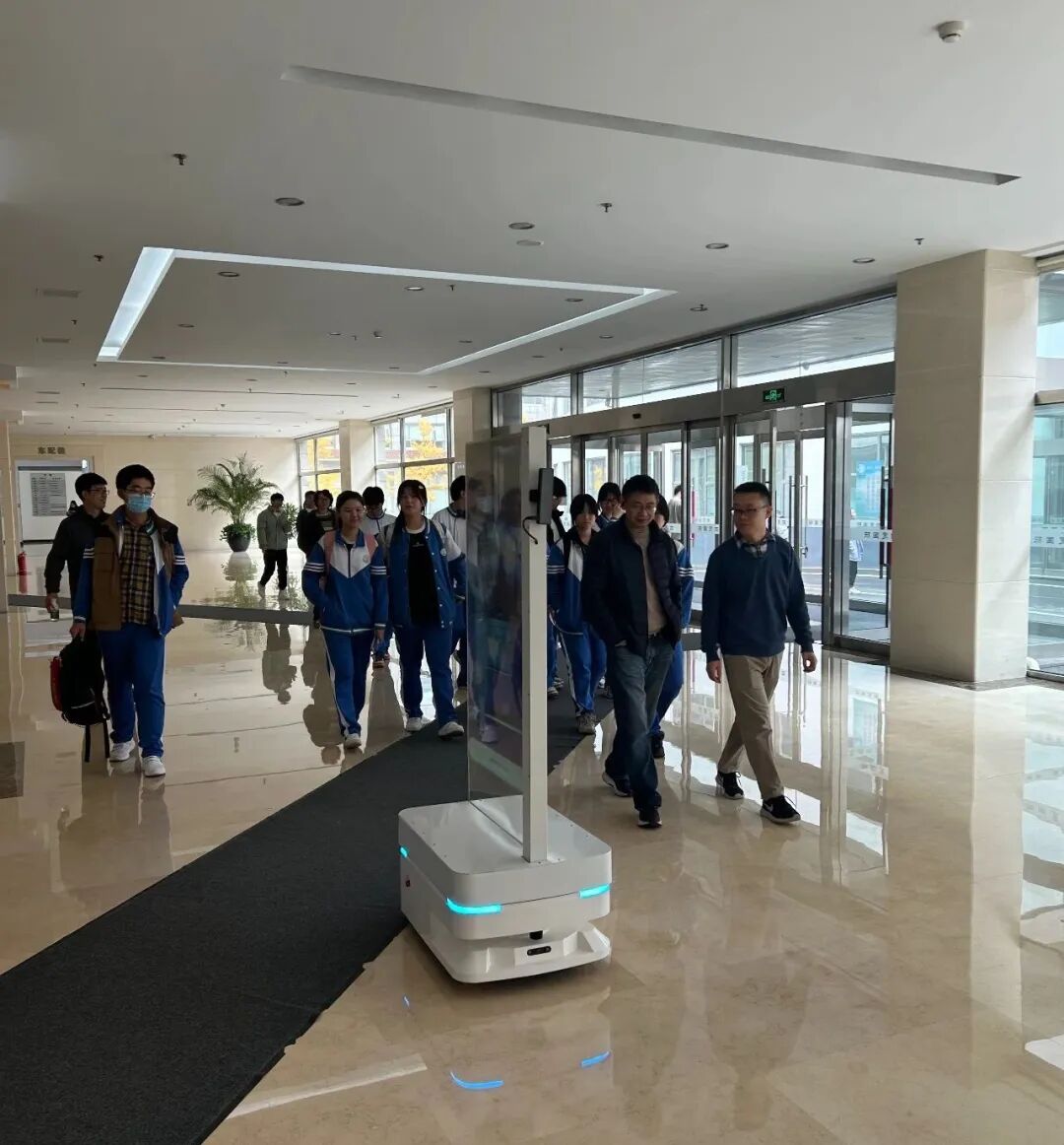 产品初体验之后,OLED透明屏导览机器人用贴近少年的语境为学生们介绍了英泰立辰在科技创新方面的理念及公司发展历程,生动活泼的语言不仅拉近了与同学之间的距离,也让学生们更好地理解了公司产品及技术所能为社会带来的改变。